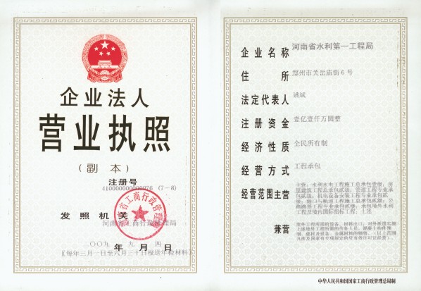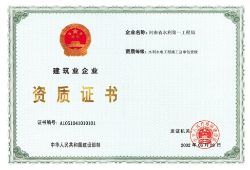 河南省水利第一工程局集团有限公司资质